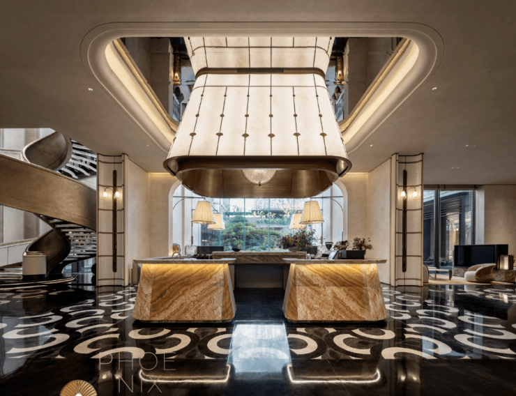 设计之上,更藏有文化的隐喻。“引水琢玉”理念贯穿始终,艺术楼梯勾勒水韵,涟漪天花映照波光,每一处细节皆呼应着金鸡湖的灵动与凤凰起舞的意境。