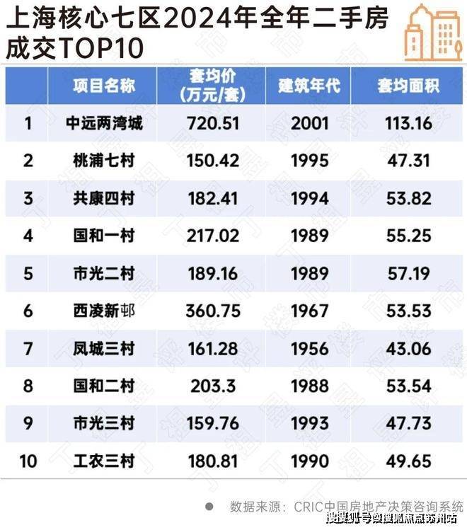 聚焦到具体成交上来看,2024年全年成交前20的项目中仅中远两湾城和仁恒河滨城套均总价较高,其余房源大多为总价300万元/套以内,建筑年代在2000年以后的郊区房源。这些房源中约一半的面积小于70平方米。