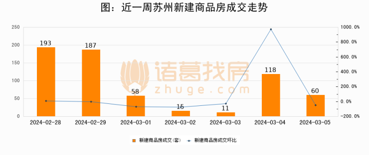 【苏州成交日报】03月05日新房成交60套、二手房162套;涨价房源133套