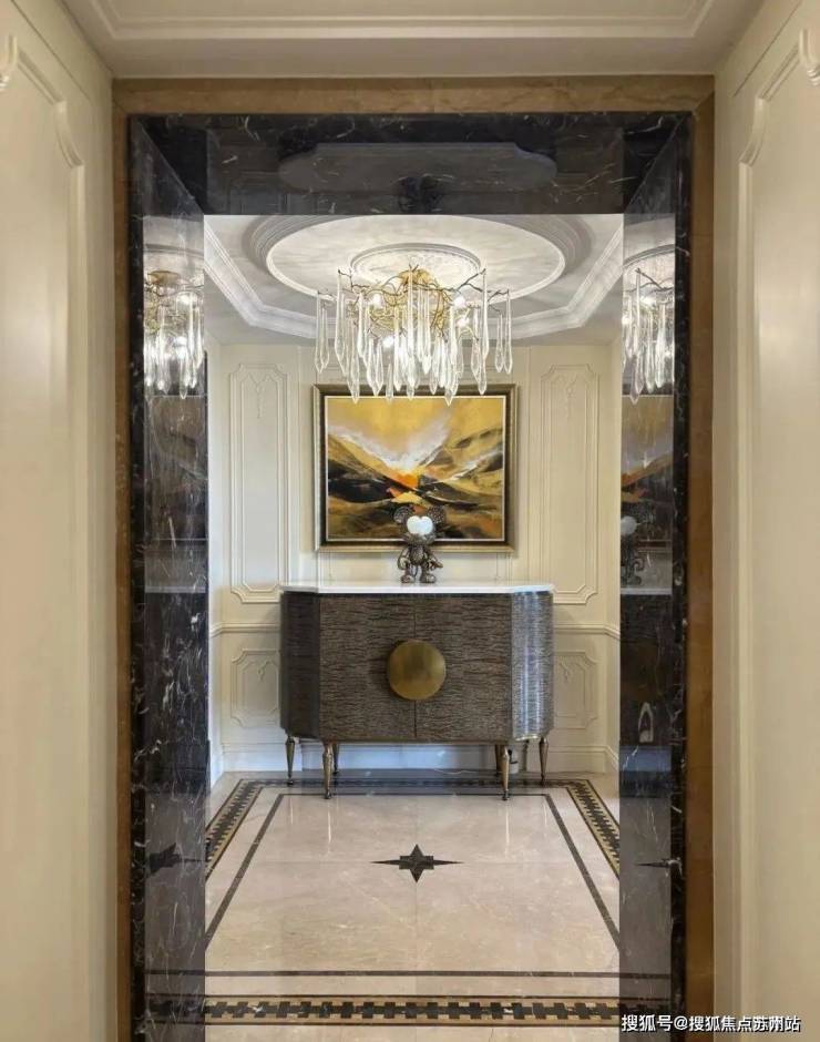 电梯快速直升云端,进入美宅之后,玄关处颇有artdeco装饰风格的复古气息扑面而来。