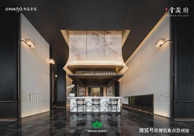 狮山金茂府将每一个细节打造极致,比如会所水吧台的艺术吊顶,会发现吊顶不仅做了飞檐翘角,甚至还是一幅水墨山水画。
