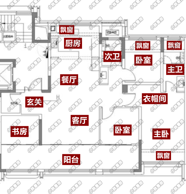 主卧的飘窗是270°,采光更好;