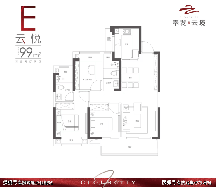 上海奉贤奉发云境售楼处电话☎:400-8123-664(官方售楼处预约看房热线)约99㎡3房2卫,动静分区,三开间朝南,带连通式阳台,一方面提升了阳台的使用面积,另一方面次卧也能便捷步入阳台,增加了生活情趣。