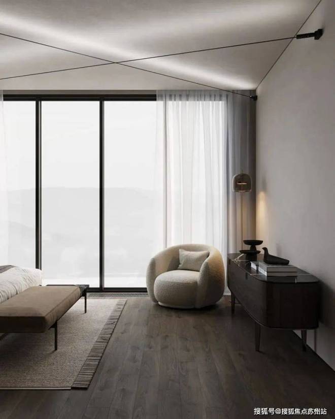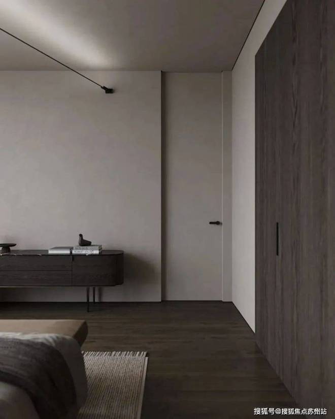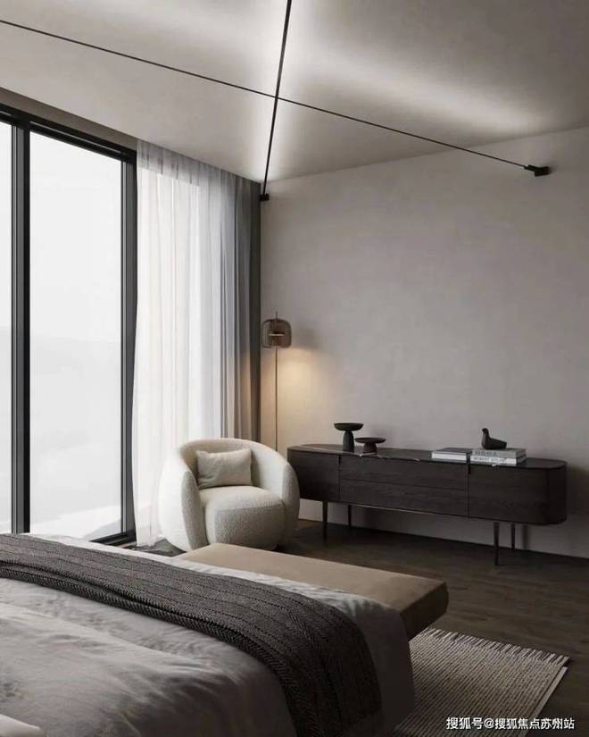 蓝城丹枫云庐售楼处电话☎:400-882-8814(预约热线)✔✔✔主卧的色调十分简约内敛,为屋主打造出了一个能够使人沉淀心灵的休憩空间。深木色的存在让空间更显厚重而沉稳,柔软而蓬松的白色床品与其形成了对比。床头灯的造型简洁却富有设计感,床对面的沙发椅能够让屋主在这里度过惬意的下午茶时光。衣帽间中则选用深色与暖调的灯光营造精致的空间氛围。