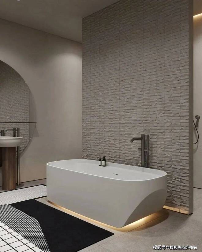 蓝城丹枫云庐售楼处电话☎:400-882-8814(预约热线)✔✔✔卫生间中,设计师选用灰白色作为空间的主色调,营造出一种舒适的轻盈感。圆形的镜面,让空间更显柔和与开阔。镜面背后的暖色灯光增添了空间的温馨质感。