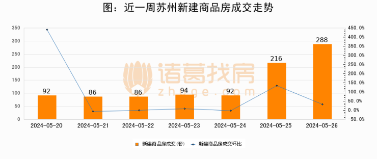 【苏州成交日报】05月26日新房成交288套、二手房5套;涨价房源226套