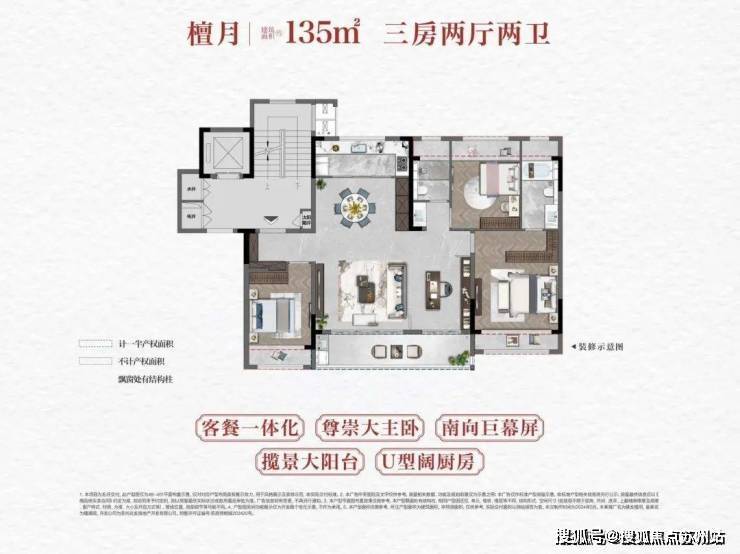 餐客厅一体化设计,让室内享有更充沛的采光的同时,极大地延伸了整个空间的边界和景观视野。主卧套房采用观景飘窗设计,扩大了室内的采光视野,更大大地增加了空间使用率和通透性。独立卫生间、衣帽间等设计,让整个空间享受星级酒店般私密尊荣。