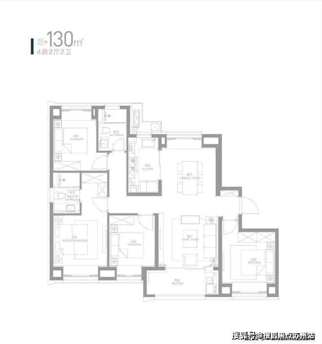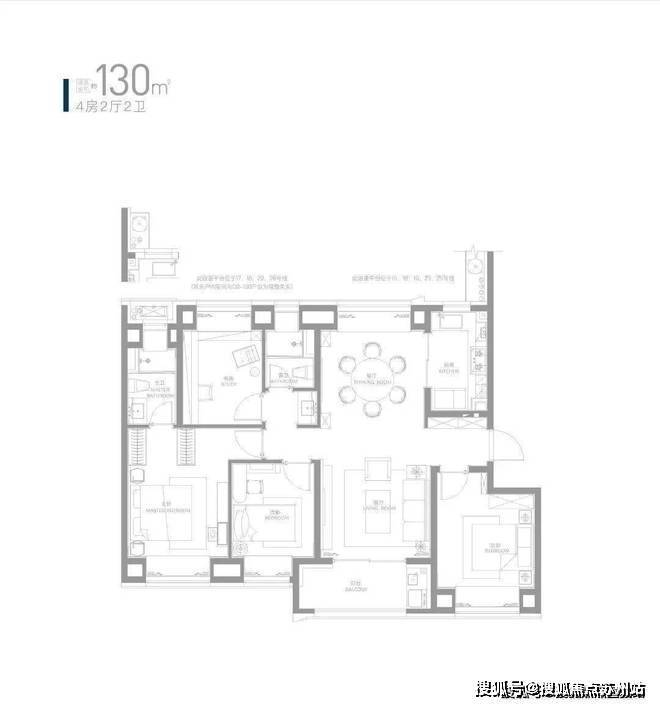 约130㎡四房采用“飞机户型”设计,约13.5米整体面宽,拥享非凡光影与通透视野。