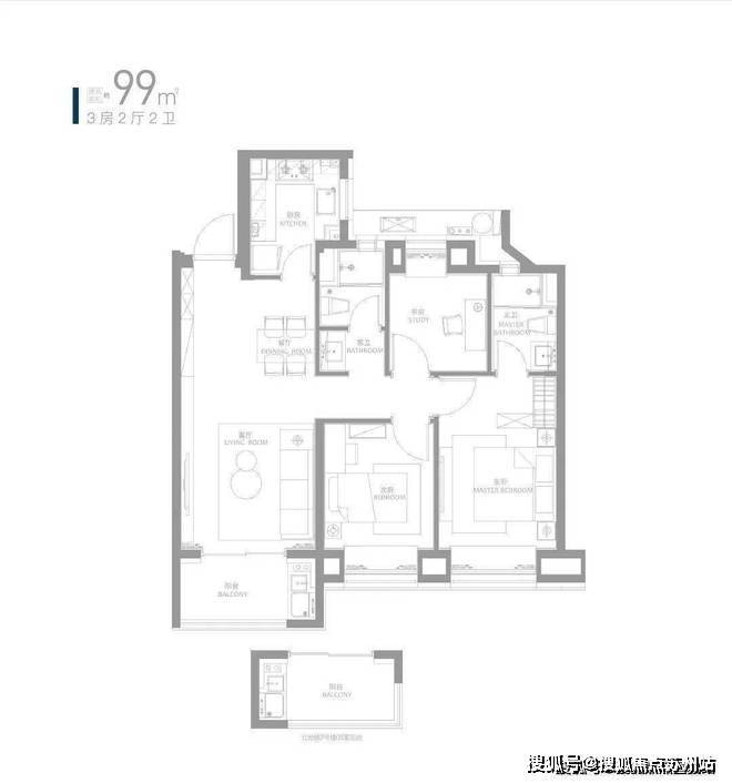 约89㎡三房,1.5卫设计为临港首创,在总价可控的基础上兼具实用性。