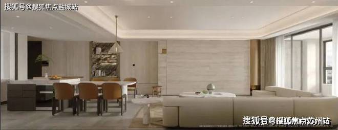 餐厅内设有尺寸大约为1.2米乘以1.5米的岛台,采用天然奢石威尼斯棕材质,这同样是交付标准!