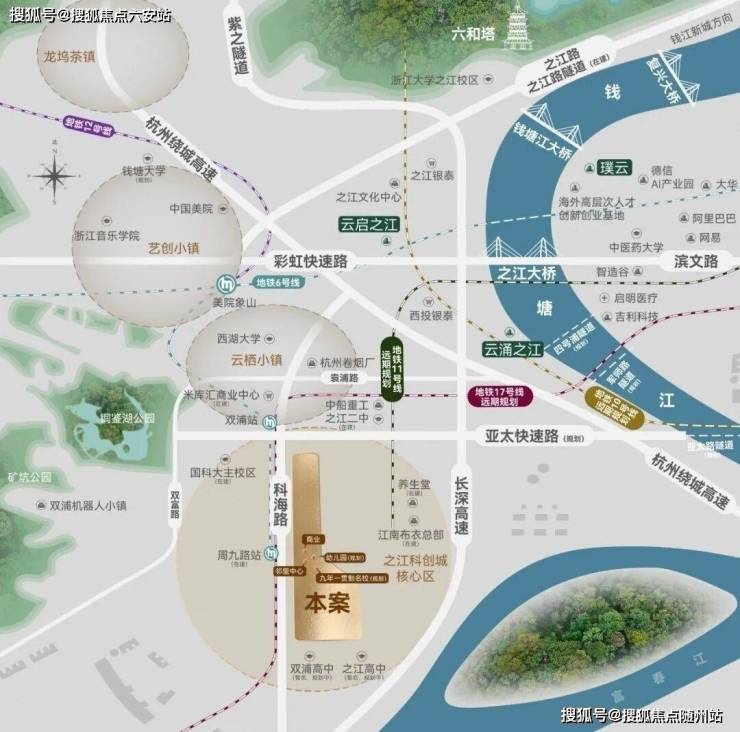 战略板块位置:云之城所在的之江科创城是杭州“城西科创大走廊”重要节点,已形成“文创+数字科技”双轮驱动的发展格局。板块毗邻双浦机器人小镇、养生堂、中船重工、江南布衣总部等产业高地。随着地铁12号线的开通与板块能级提升,云之城将成为连接杭州两大科创高地的重要人居节点。