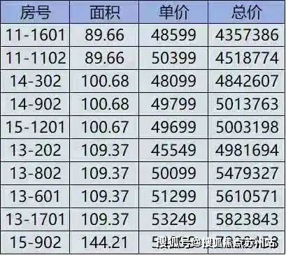 四期一房一价表: