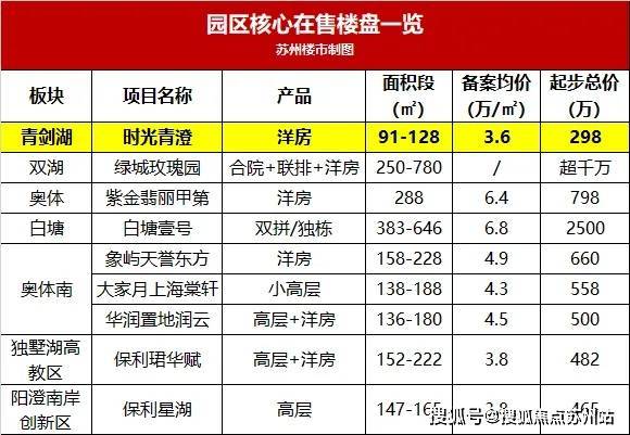 据统计,目前园区新房中,只有3个纯洋房产品,其他全是高层或高低配,时光青澄是其一,距离最近的是总价798万起的紫金·翡丽甲第,一般人难以企及。