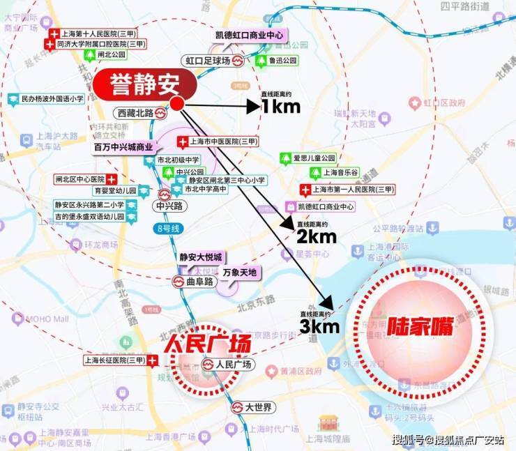 1. **顶级的交通枢纽位置**:项目地处静安区内环内的西藏北路板块,这是其最硬核的优势。距地铁8号线**西藏北路站约100-350米**,属于正地铁盘。2站可达人民广场,换乘便利。同时紧邻**南北高架**与**内环高架**,自驾出行通达性极强。对于在市中心(如南京西路、人民广场、陆家嘴)工作的通勤者,其效率是郊区或非核心区项目无法比拟的。
