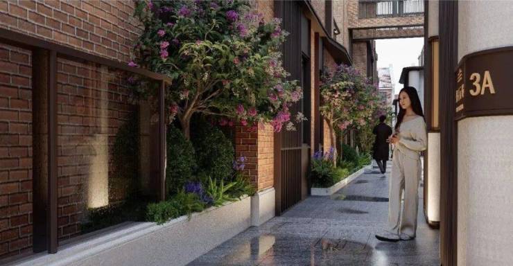 进入社区内部,中建壹品.外滩元境溯源上海里弄文化根脉,以"一巷三坊,三庭四园"的规制,重构老上海的邻里温情社交场域。