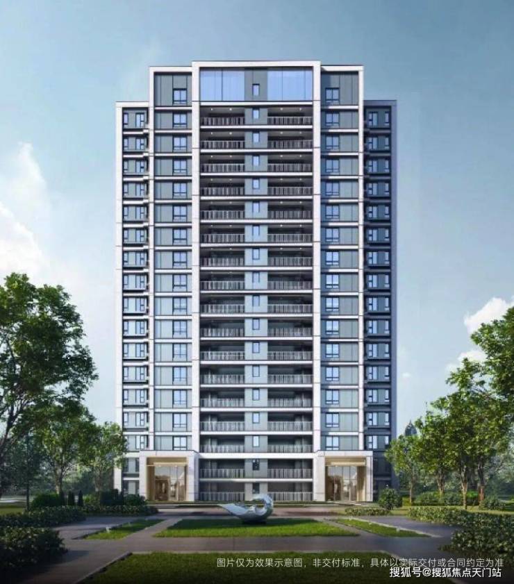 立面点缀金色的框线,极简优雅但又不失格调,符合小区所在莘庄商务区稀缺核心住宅的定位。