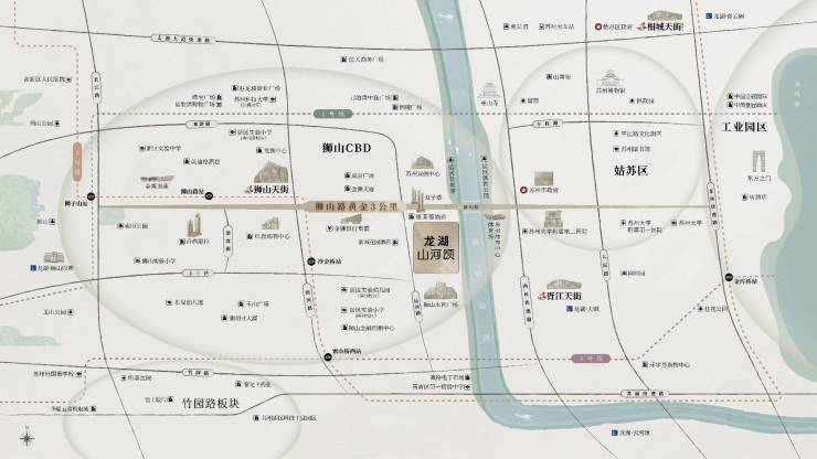 主干道网络:紧邻狮山路、长江路,5分钟上西环快速路,15分钟直达金鸡湖、高新区CBD。
