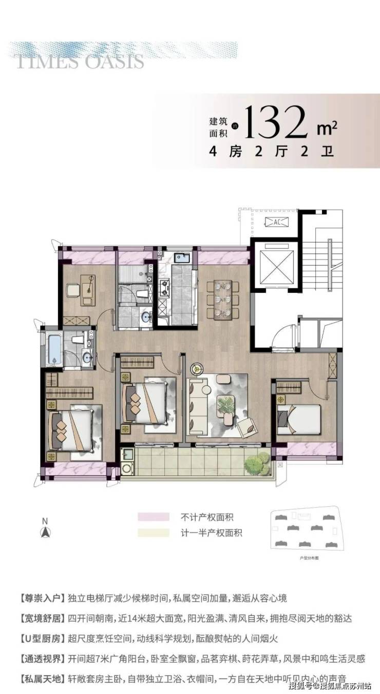 恒棠澜轩仅提供一种户型,即约132㎡的四房两厅两卫,且户户都是边套设计,两梯两户的配置,保证了居住的私密性和舒适度。户型设计上,大面宽短进深,四开间朝南,享有近14米超大采光面。开间超7米广角阳台,尊崇套房式主卧,自带独立卫浴和衣帽间,充分考虑了现代家庭的生活需求,为居住者提供了宽敞舒适的居住空间。
