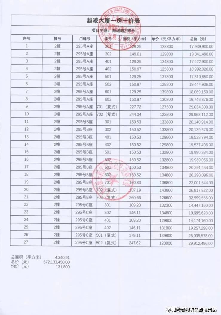 一房一价表