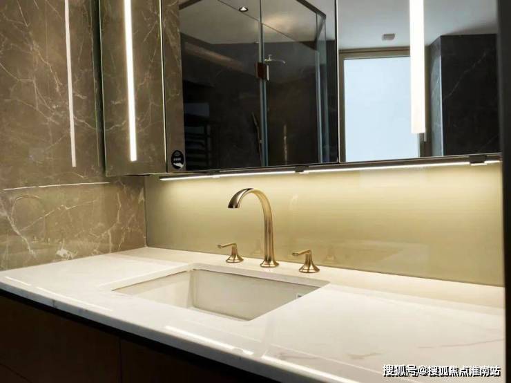 细节方面,项目采用了拉米娜的进口电视背景墙、顶级奢侈品牌卡莉斯塔的主卫龙头、ABB的智能化控制、LG的厨房台面,甚至是阳台的电动晾衣架、水槽、吊柜都是交付标准.