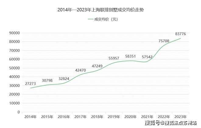 2014-2023年上海联排别墅成交均价