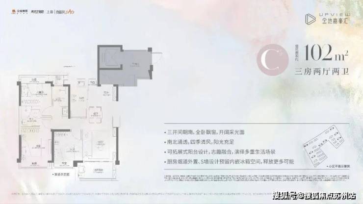 于嘉定新城的改善客户,可能之前住的是步梯的老房子,南北不通、格局压抑,功能间不够,装修差。那在金地嘉峯汇户型和装修上,你能得到全维度改善,很多前沿的设计让你的生活得到质的飞跃。项目主力在售建面约89-102㎡3房,其中建面约89㎡3房: