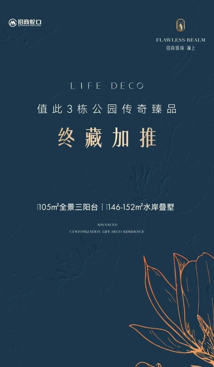 【招商臻境】此次收官地块加推建面约122-143㎡3-4+1房产品;前期少量约95㎡~152㎡高层/叠墅在售,总价约550万起!正在认购中,样板间线上预约中!
