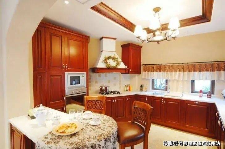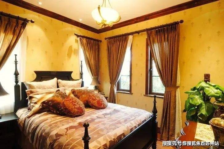 【同润圣塔路斯】采用美国南加州的建筑风格,外立面采用淡黄色的手工Stucco抹灰外墙和红瓦屋顶,将原汁原味的南加州风格复刻至此,同时融入原木、三色瓦片、红砖、铁艺、各式烟囱等元素,渗透一砖一瓦,仿佛置身异国小镇。