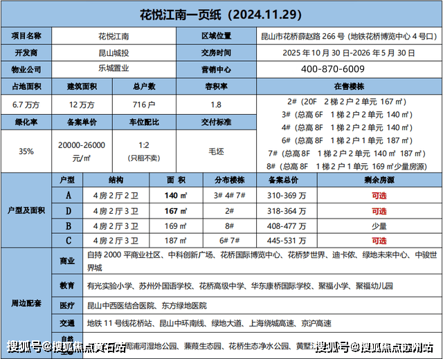 作为花桥的地标性建筑,花悦江南在规划与设计上更是下足了功夫。花悦江南总占地面积约6.7万平方米,建筑面积约12万平方米,精心规划了716户尊贵居所,其中包括15栋6-8层的多层洋房和4栋20-26层的高层住宅,错落有致地布局在这片绿意盎然之中。户型设计上,花悦江南提供了约140㎡、167㎡、169㎡、187㎡等多种面积段的选择,每一种户型都充分考虑到了现代家庭对于居住空间的需求与追求,无论是三口之家还是三代同堂,都能在这里找到最适合自己的温馨港湾。