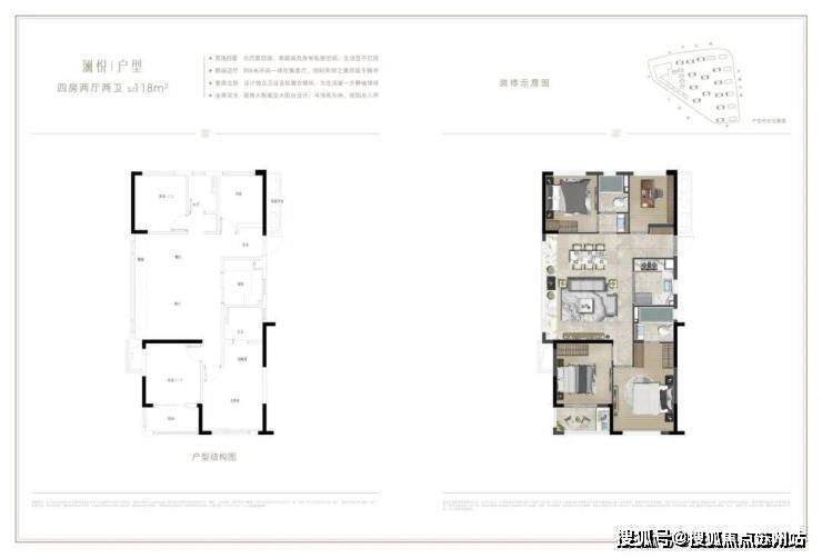 而建面约118㎡的户型为边套设计,做到了 四房两厅两卫结构,在杭州市面上比较难得。