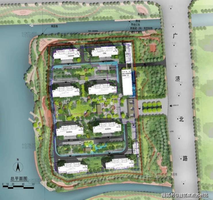 项目基地三面临水,景观位置极佳。规划设计以纵横轴线为构图法则,梳理建筑与水的关系,并以纵横轴线为承载,深入渗透传统东方韵味。