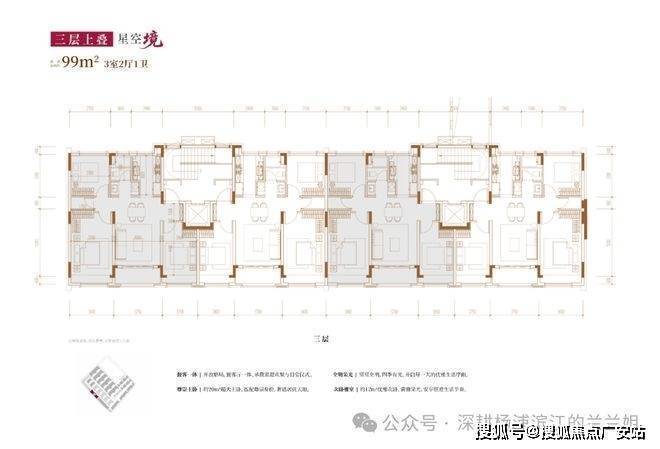 建面约99㎡3房2厅2卫(二层平叠)