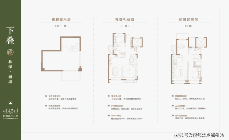 建筑面积约91-144㎡低密叠墅(复式住宅),则为改善置业者提供了新的选择。庭前一方天地、巨幕宽厅、星空露台、地下空间,称得上是城市墅居的理想范本!