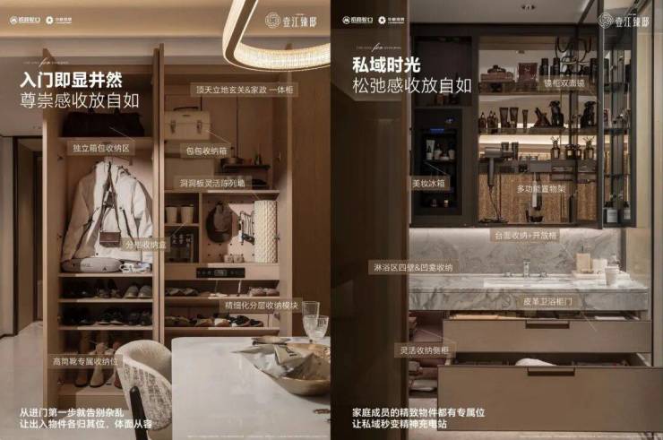 在保证卧室数量的基础上,客餐厅空间仍然有超强的尺度感,搭配户型设计上预留了超大收纳空间以及全维收纳体系的交付,项目实现了户型功能优化,提升了生活实用性。