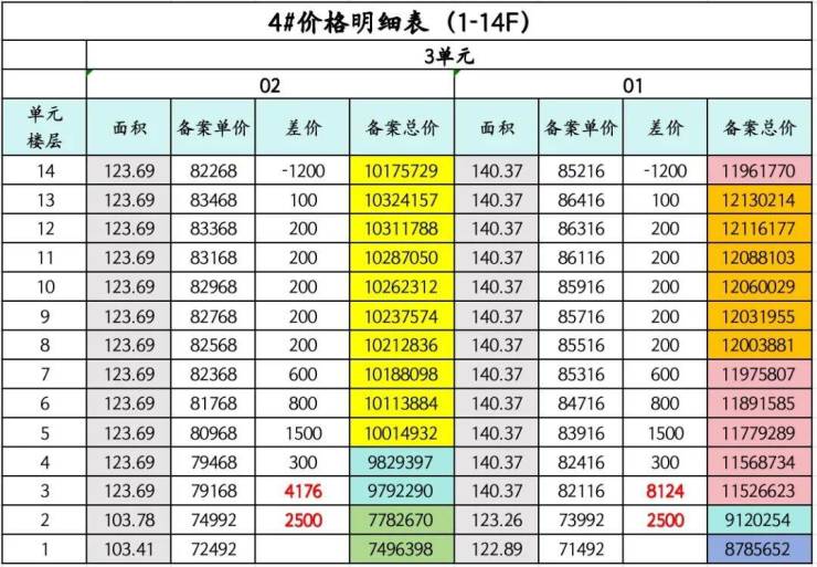 两栋楼楼层价差逻辑基本一致,与上批次逻辑也大差不差,我就以4幢东单元为例来帮大家梳理一下。