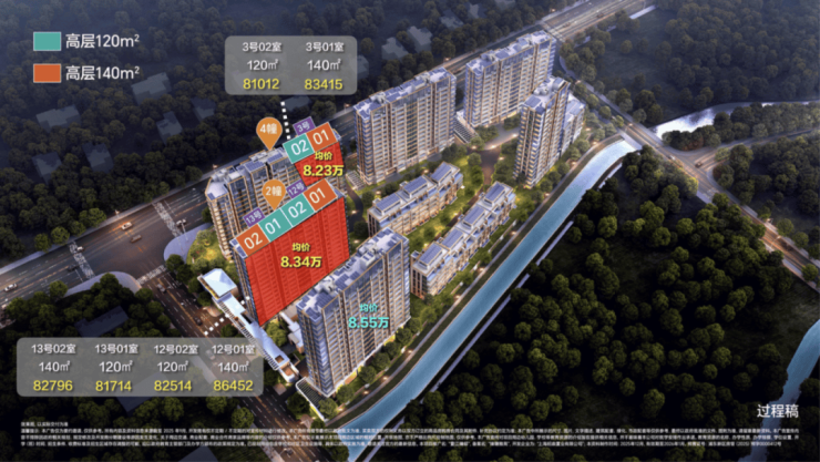 注意:120㎡和140㎡标准户型没有一楼房源,总价最低门槛都在2幢2楼。