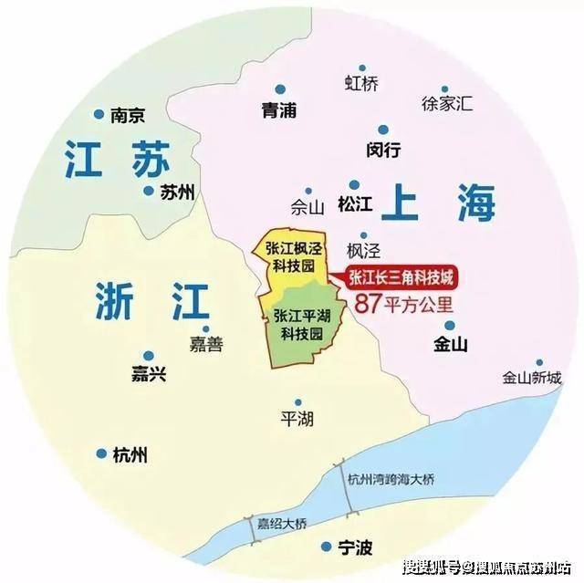 「张江长三角科技城」地跨上海与浙江两地,由张江国家自主创新示范区的张江金山园、张江平湖园共建而成;总规划面积87平方公里,平湖境内45平方公里,枫泾境内42平方公里。
