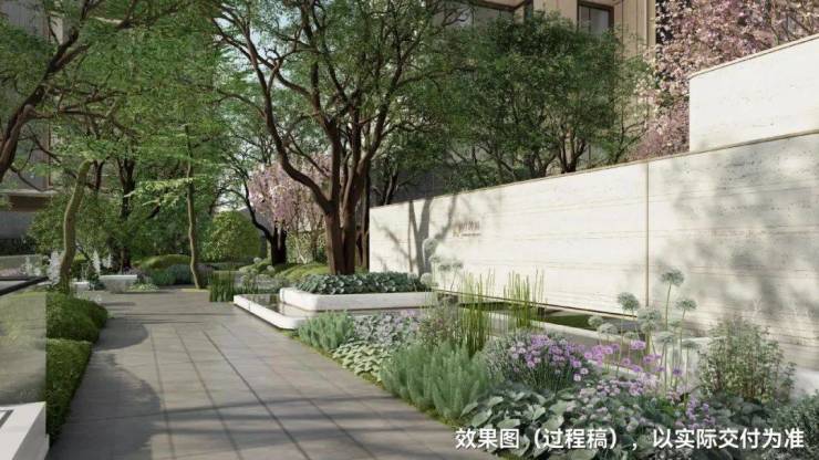 约60m尺度奢阔归家门庭,约1800㎡下沉式庭院会所,约2000㎡超级架空花园。