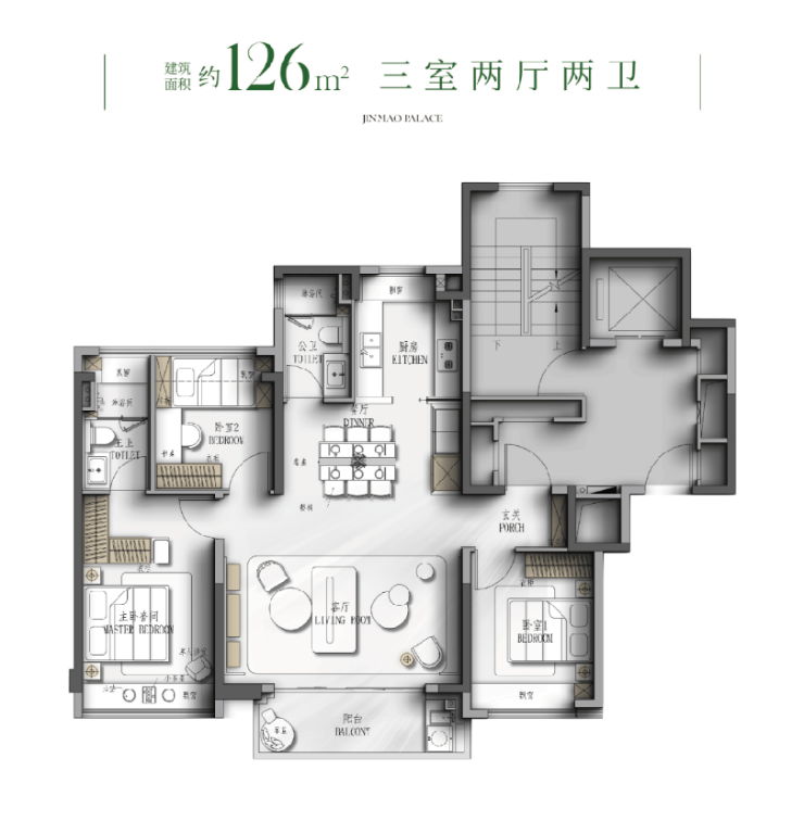 项目推出建面约114、126、144㎡3-4房,偏改善,满足不同家庭需求。