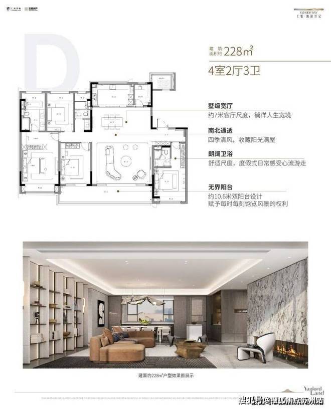 约10.6米宽景双阳台,畅享堪比IMAX电影画面的观景体验;约7米客厅尺度,徜徉人生宽境;双套房设计,朗阔卫浴,度假式日常感受心流游走。