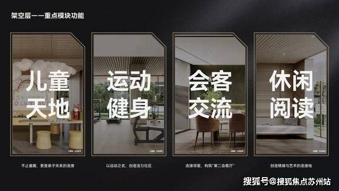 功能方面,充分考虑不同场景下业主的使用需求,规划了 儿童天地、运动健身、会客交流、休闲阅读等主题。
