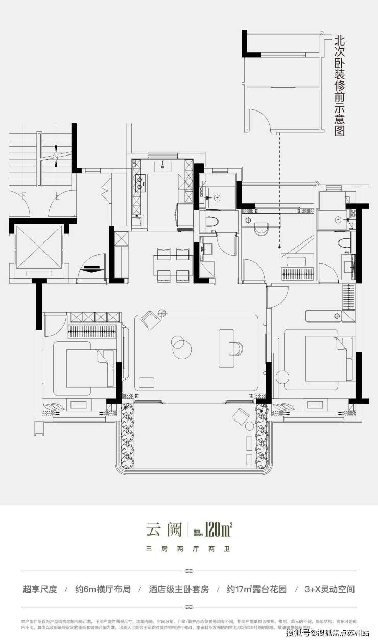 120㎡的三房就更宽敞了,主卧还带独立卫浴,特别适合小夫妻或者一家三口。厨房的设计特别合理,做饭的时候还能跟客厅里的家人聊天。