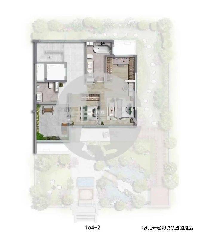 二层双卧朝南,长进深短面宽,全明设计,主卧起居室→衣帽间→卫浴间层层递进。