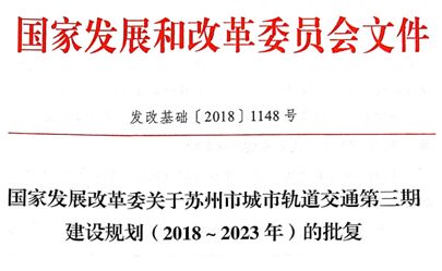 8月14日,国家发改委正式发文批复苏州市轨道交通第三期建设计划,同意苏州市建设6号线、7号线、8号线和S1线,其中S1线西接苏州3号线夷亭路站、东联上海11号线花桥站。