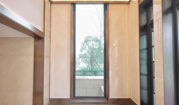 部分楼栋入户厅通过高约6米的落地窗引入自然光线,整个空间瞬间化作光的容器,像一个装满星光的琉璃樽。