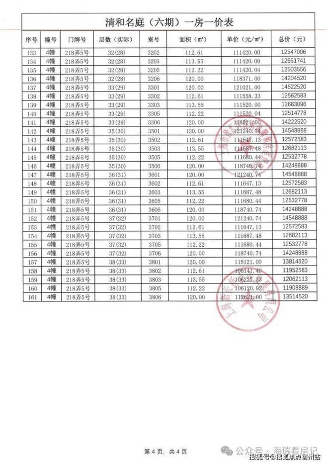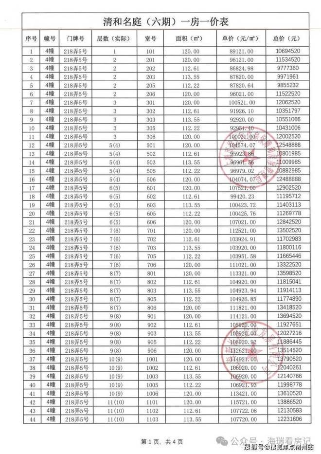一房一价表如下: