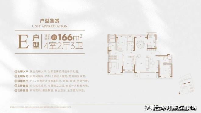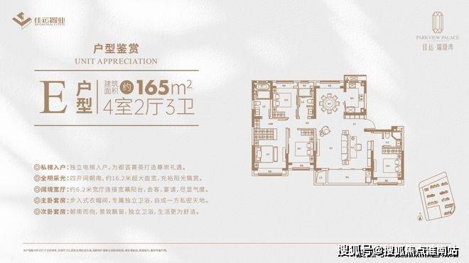 2. **宣称的较高得房率与户型细节**:项目宣传得房率超过80%,部分大户型采用一梯一户设计。其建面约166平方米的户型设计了约6.2米宽的横厅和南向三卧,空间尺度在同面积段产品中具备一定竞争力。