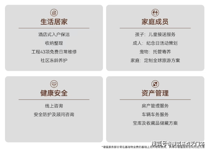 同时引入源自世界奢华酒店的“无边际服务”,依据280余项标准化服务细则,提供日常居家服务、健康安全、资产托管等增值服务,如入户保洁、儿童校车点接送、宠物托管、工程43项免费日常维修等,打造“冻龄”社区。