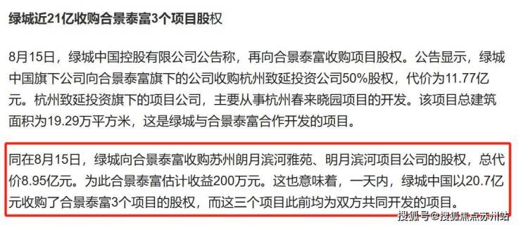 绿城明月滨河和绿城朗月滨河,位于吴中区城南迎春南路西侧,有南北两地块构成,前期由合景泰富和绿城联合开发,后期因合景泰富的原因,把两项目的股权全部转让给了绿城,至此绿城明月滨河和绿城朗月滨河都是由绿城全资投资开发。