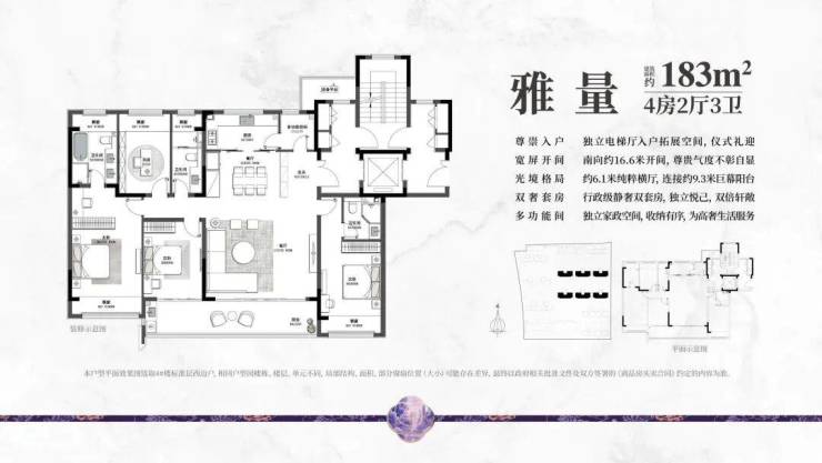 户型选择:建筑面积约113㎡、143㎡、160㎡、183㎡,都是四房格局,满足不同家庭的改善需求。